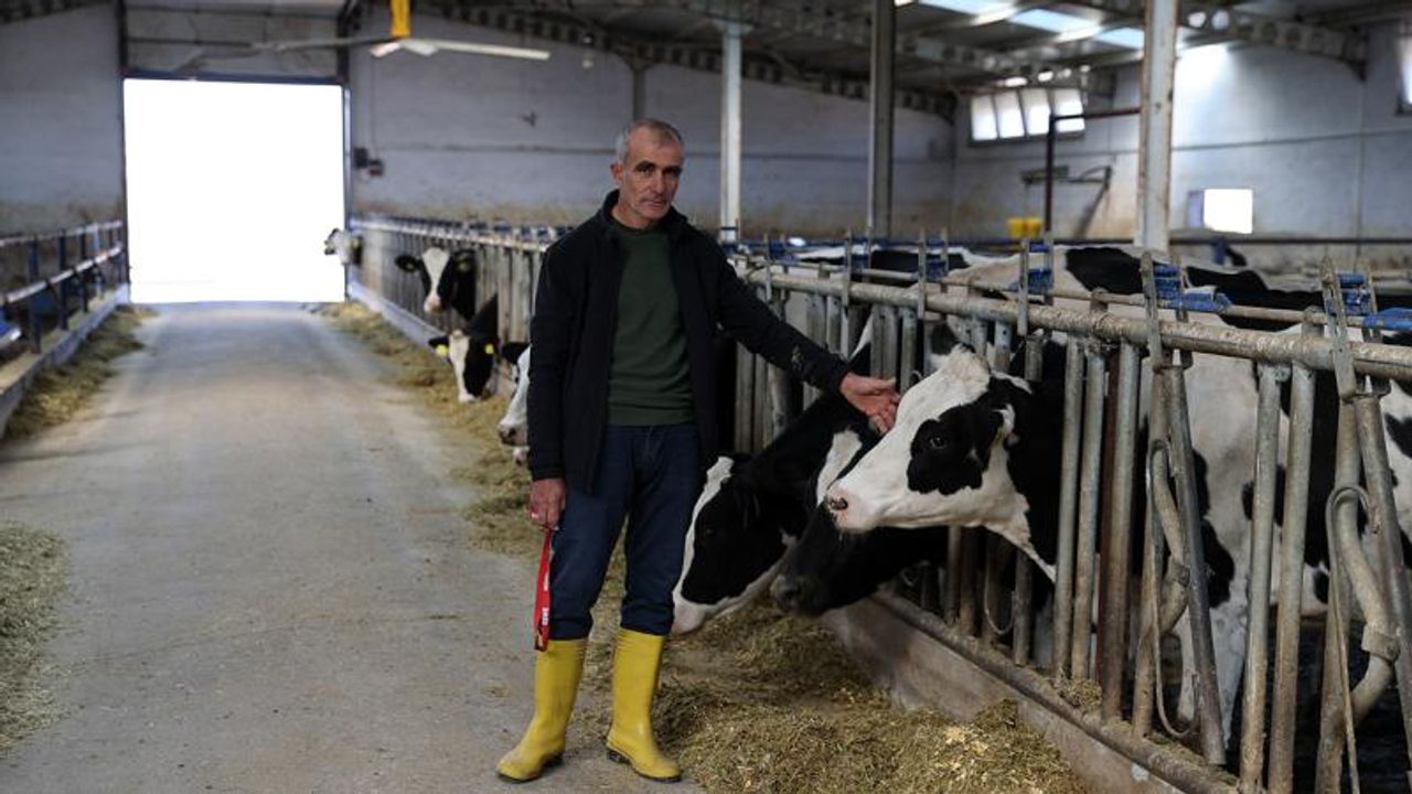Mesleğe 20 inekle başlayıp 80'e çıkaran ve 150 büyükbaşı hedefleyen Dağlar, modern ekipman ve otomatik sağım robotuyla günlük ortalama 1 ton süt üretimi yaparak ailesinin geçimini sağlıyor.