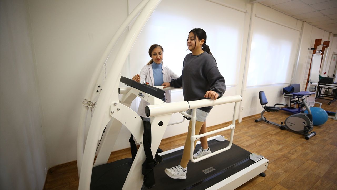 Kahramanmaraş'ta eğitimini sürdüren 7'nci sınıf öğrencisi Şavkılı, belli aralıklarda bacağını güçlendirmek için merkezde fizik tedavi görüyor.