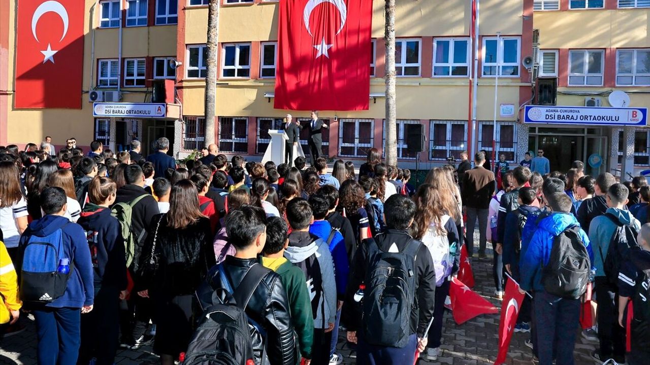 ADANA (AA) - Adana Valisi Mustafa Yavuz, DSİ Baraj Ortaokulu'nda düzenlenen Bayrak Töreni'nde öğrencilerle bir araya geldi.