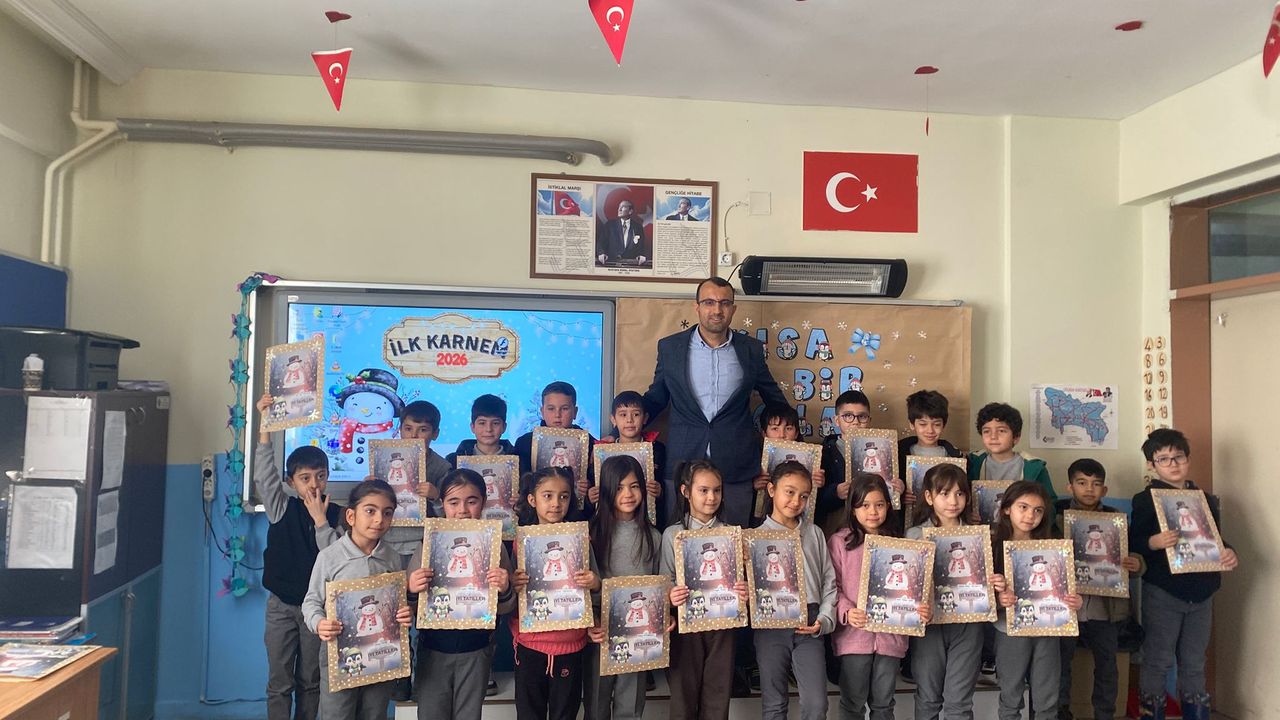 Aydın, öğrencilere karnelerini vererek, yarıyıl tatilini verimli geçirmeleri ve kitap okumaları tavsiyesinde bulundu.
