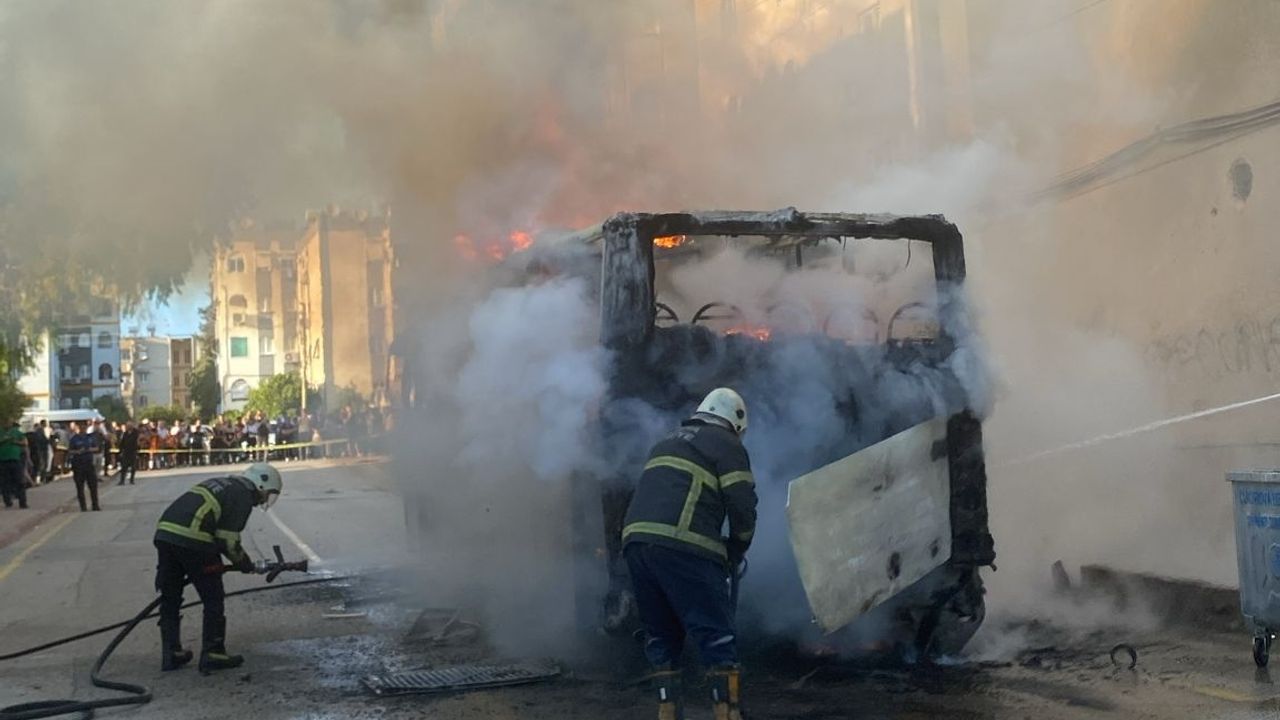 Yüzüncüyıl Mahallesi'nde park halindeki bir özel halk otobüsünde henüz belirlenemeyen nedenle yangın çıktı.