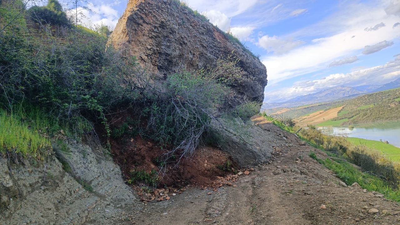 Kaya nedeniyle hayvancıların kullandığı toprak yol ulaşıma kapandı.