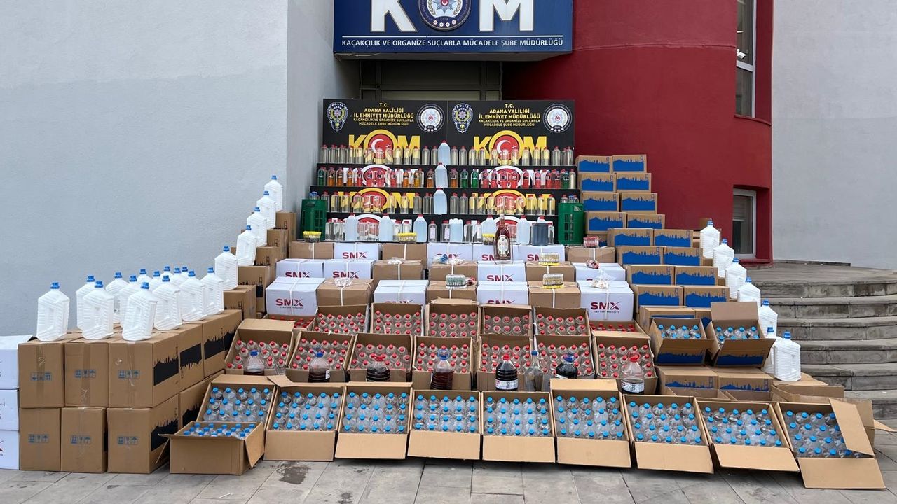 Adana'da 900 litre sahte içki ve 4 bin 135 litre etil alkolün ele geçirildiği operasyonda 17 zanlı gözaltına alındı.