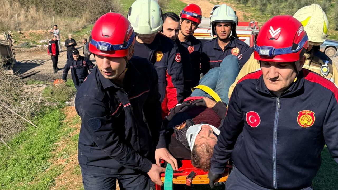 İtfaiye ekiplerince sıkıştığı yerden kurtarılan yaralı, sağlık ekiplerince hastaneye kaldırıldı.