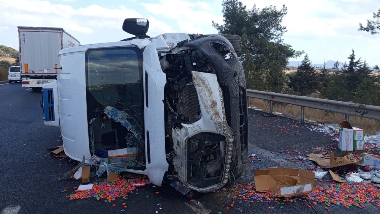 Sürücünün yaralanmadığı kazada araçtaki çay şekerleri yola savruldu.