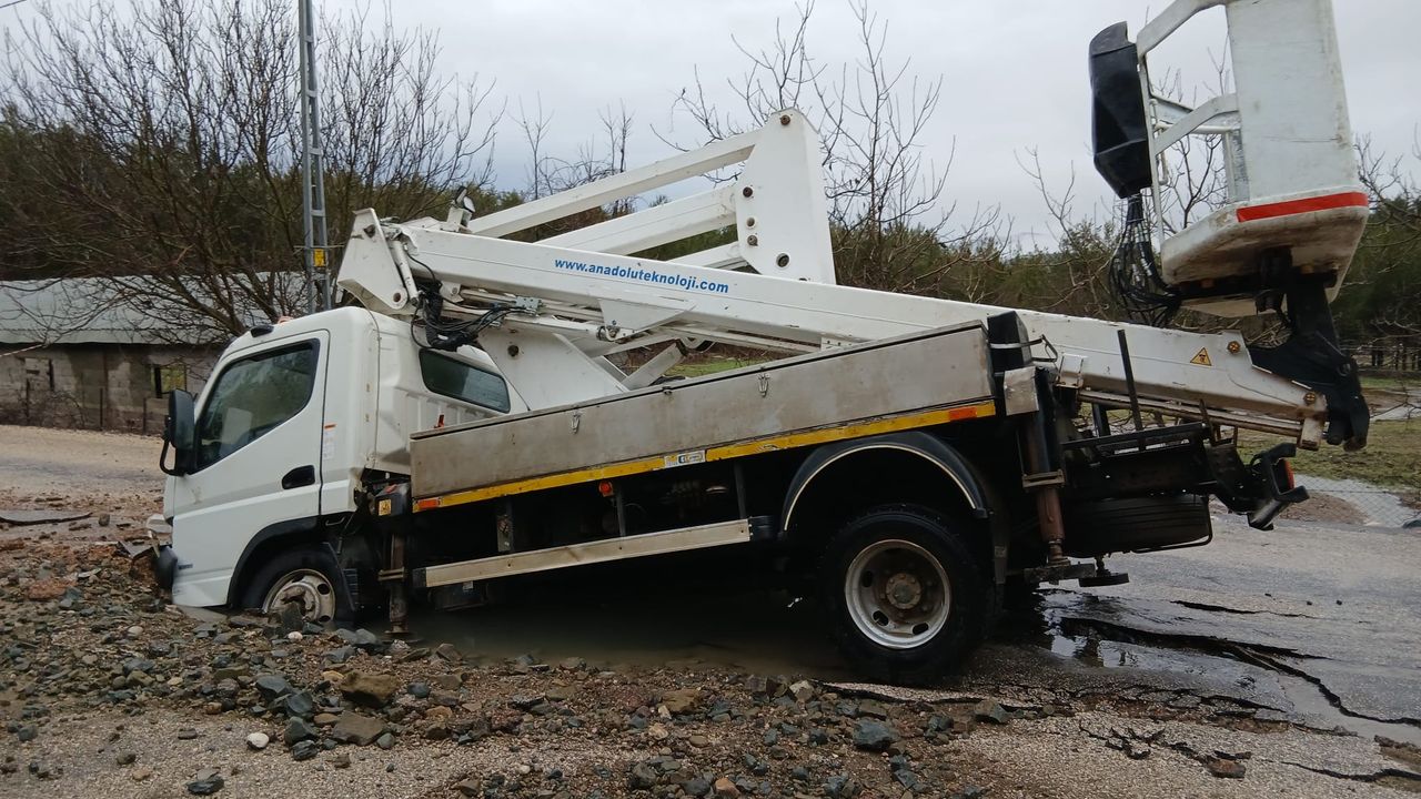 Hasar oluşan araç, Aladağ Belediyesi ekiplerince çukurdan çıkarıldı.