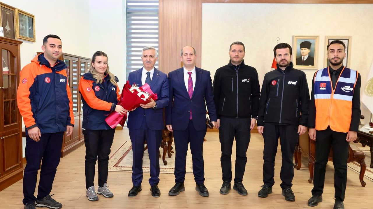 Afet ve Acil Durum Yönetimi Başkanlığının (AFAD) 16. kuruluş yıl dönümü dolayısıyla, Kahramanmaraş İl Afet ve Acil Durum Müdürü Tayfun Temur ve beraberindeki AFAD personeli, Vali Mükerrem Ünlüer’i makamında ziyaret etti.