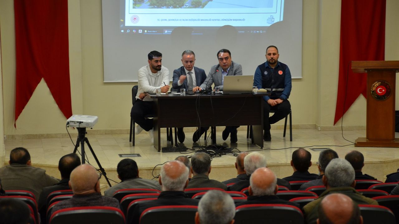 Kentsel Dönüşüm Başkanlığı Şube Müdürü Erdem Erdoğan ve Afşin Belediye Başkan Yardımcısı Fatih Demir, rezerv alan kapsamına giren bölgelerle ilgili hak sahiplerine detaylı bilgiler sundu.