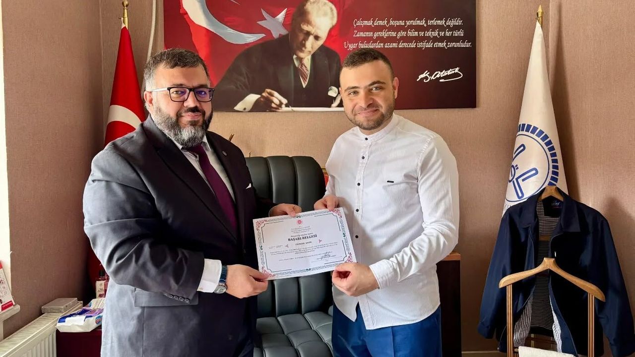 Başarı belgesi, Afşin İlçe Müftülüğü adına İlçe Müftüsü Fatih Gökçek tarafından takdim edildi.