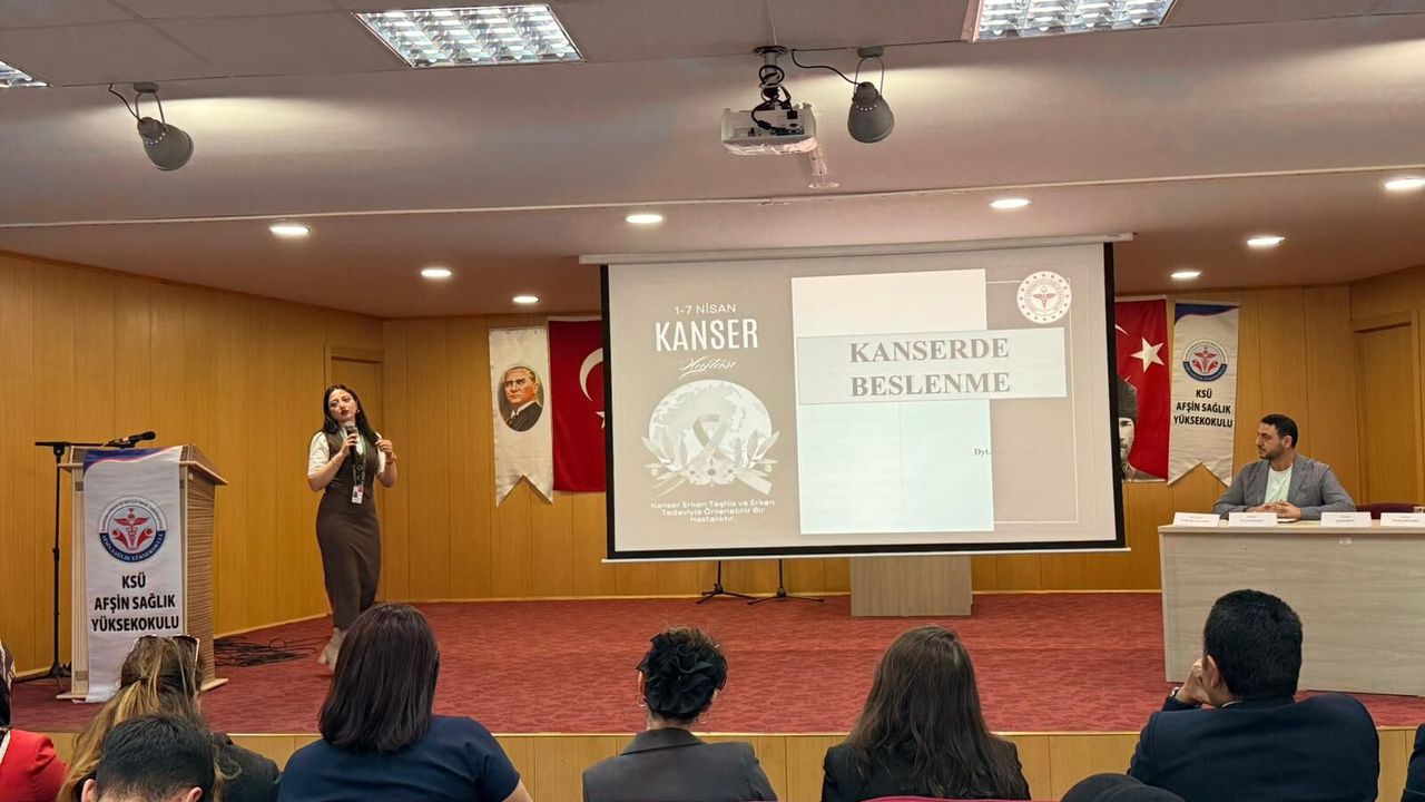 Kahramanmaraş Sütçü İmam Üniversitesi Afşin Sağlık Yüksekokulu, önemli bir bilimsel etkinliğe ev sahipliği yaptı. “Kanserde Erken Tanı ve Multidisipliner Yaklaşım” başlıklı panelde, özellikle rahim ağzı ve meme kanseri konuları ele alındı. Alanında uzman akademisyenlerin katılımıyla gerçekleştirilen program, katılımcılara kapsamlı ve güncel bilgiler sundu.