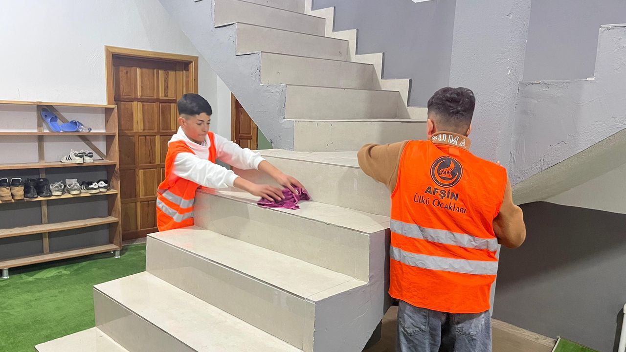 Ülkü Ocakları Afşin İlçe Başkanlığı tarafından düzenlenen etkinlikte, ibadethanelerin kandil gecesine daha temiz ve düzenli bir şekilde hazırlanması amaçlandı. Program kapsamında bir araya gelen gençler, cami içi ve çevresinde temizlik çalışmaları yaparak toplumsal sorumluluk bilinciyle hareket etti.