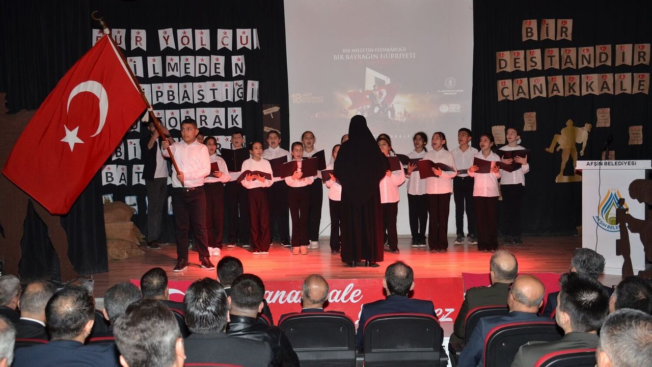 Program kapsamında Cumhuriyet Ortaokulu öğrencisi Tuana Çetin tarafından “Çanakkale Şehitleri” adlı şiir okundu ardından, okul korosu müzik öğretmeni Şule Özdemir yönetiminde öğrenciler tarafından “Bu Bayrak” adlı eser seslendirildi. Afşin Şifa Mesleki ve Teknik Anadolu Lisesi öğrencilerinin hazırladığı oratoryo gösterisi izleyicilerden büyük beğeni toplarken, Cumhuriyet Ortaokulu öğrencilerinin sahnelediği gölge tiyatrosu ile “Onbeşliler”in Çanakkale ruhu etkileyici bir şekilde yansıtıldı.