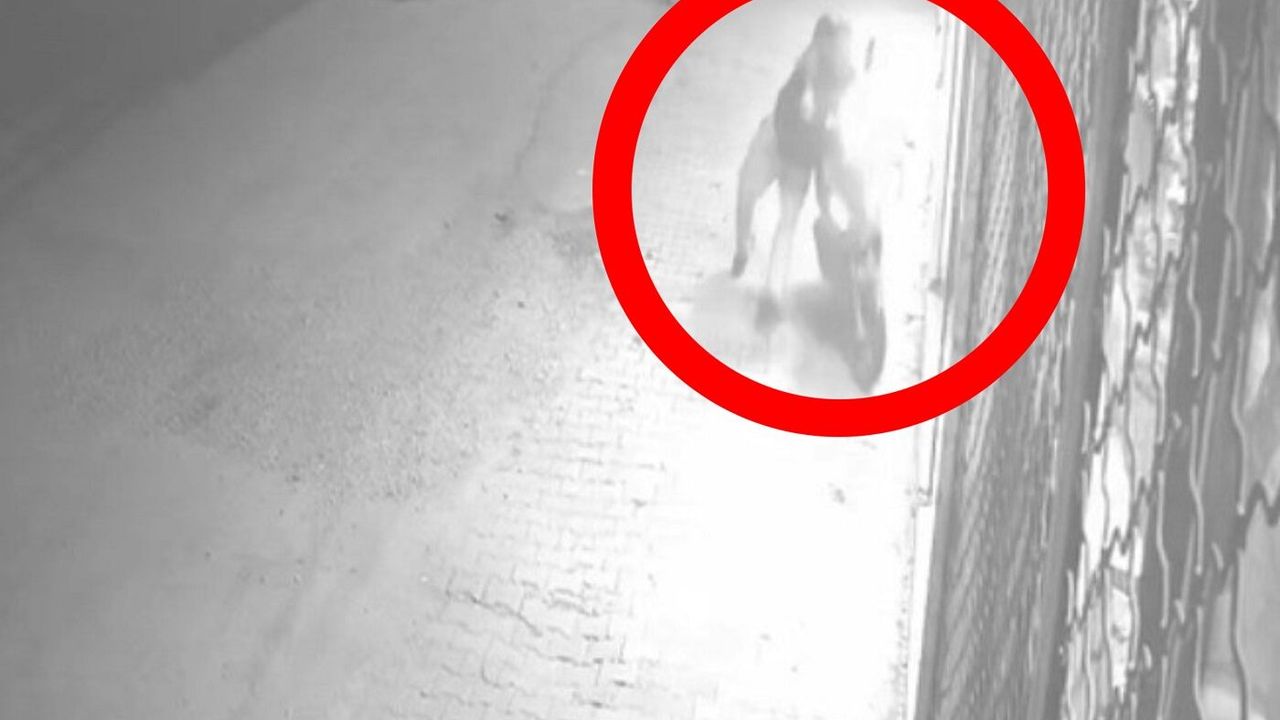 Afşin’de bir sürücü motosikletine dokunduğu gibi gaza basınca sürüklenip düştü. O anlar güvenlik kamerasınca kaydedildi.