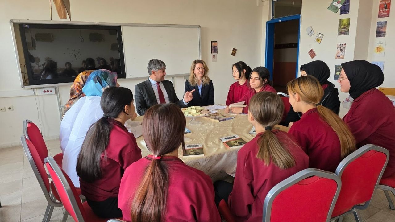 Ziyaret kapsamında Müdür Kaba, öğrencilerle birlikte Mustafa Kutlu’nun “Uzun Hikâye” adlı eserini değerlendirdi ve kitapta yer alan değerler, karakterler ile hikâyenin ana teması üzerine keyifli bir sohbet gerçekleştirdi.