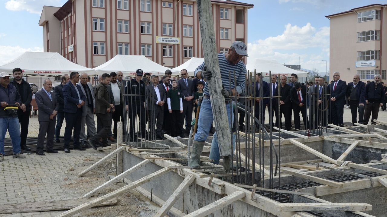 Afşin Şehit Kemal Pıçak Anadolu İmam Hatip Lisesi bünyesinde yapımı planlanan tatbikat camii için temel atma töreni düzenlendi.