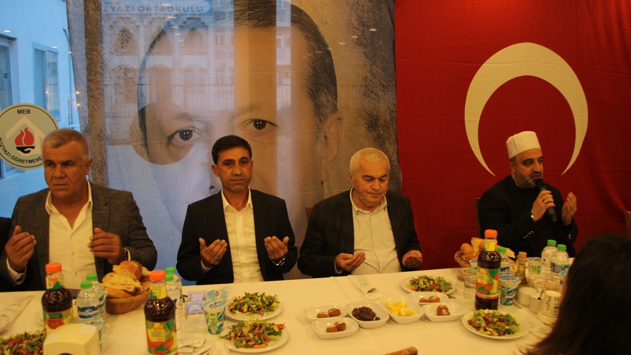 Bozyazı Öğretmenevi'nde düzenlenen programda Belediye Başkanı Mustafa Çetinkaya, AK Parti İlçe Başkanı Gökhan Zor ve İlçe Müftüsü Yakup Avcı, vatandaşlarla oruçlarını açtı, dua etti.