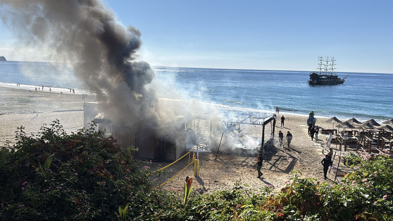 Antalya'nın Alanya ilçesinde plajdaki büfede çıkan yangın, itfaiye ekiplerince söndürüldü.