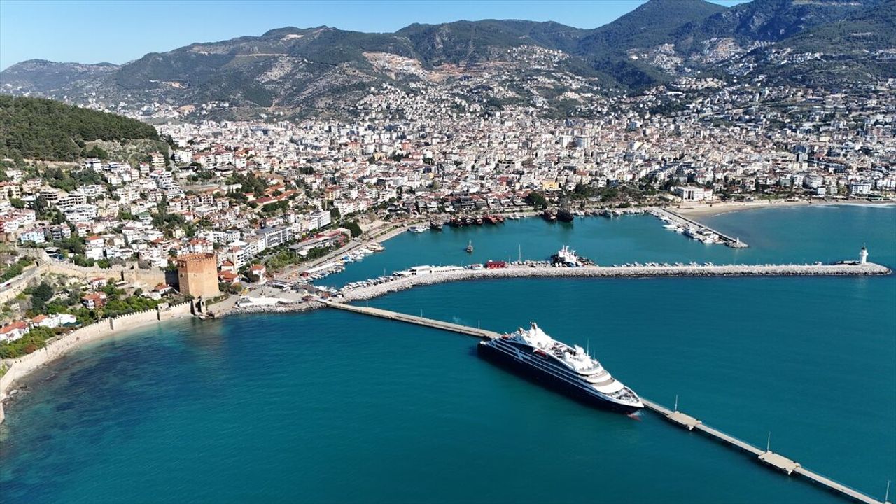 Kuşadası'ndan demir aldıktan sonra rotasını Antalya'ya çeviren 142 metre uzunluğundaki yolcu gemisi, sabah saatlerinde Alanya Limanı'na yanaştırıldı.