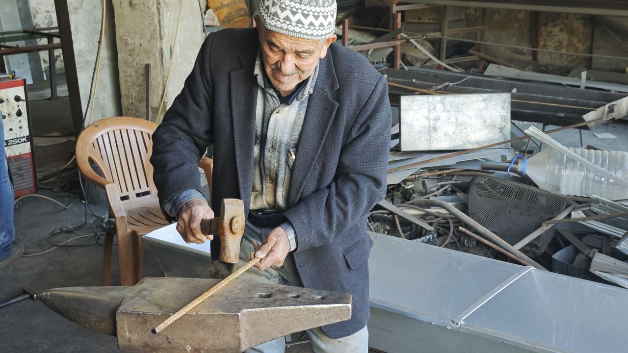Antalya'nın Korkuteli ilçesinde gençlik yıllarında öğrendiği demircilik zanaatını devam ettiren 77 yaşındaki Ali Kaya, mesleğini 57 yıldır dükkanında yankılanan çekiç sesleri arasında yaşatıyor.