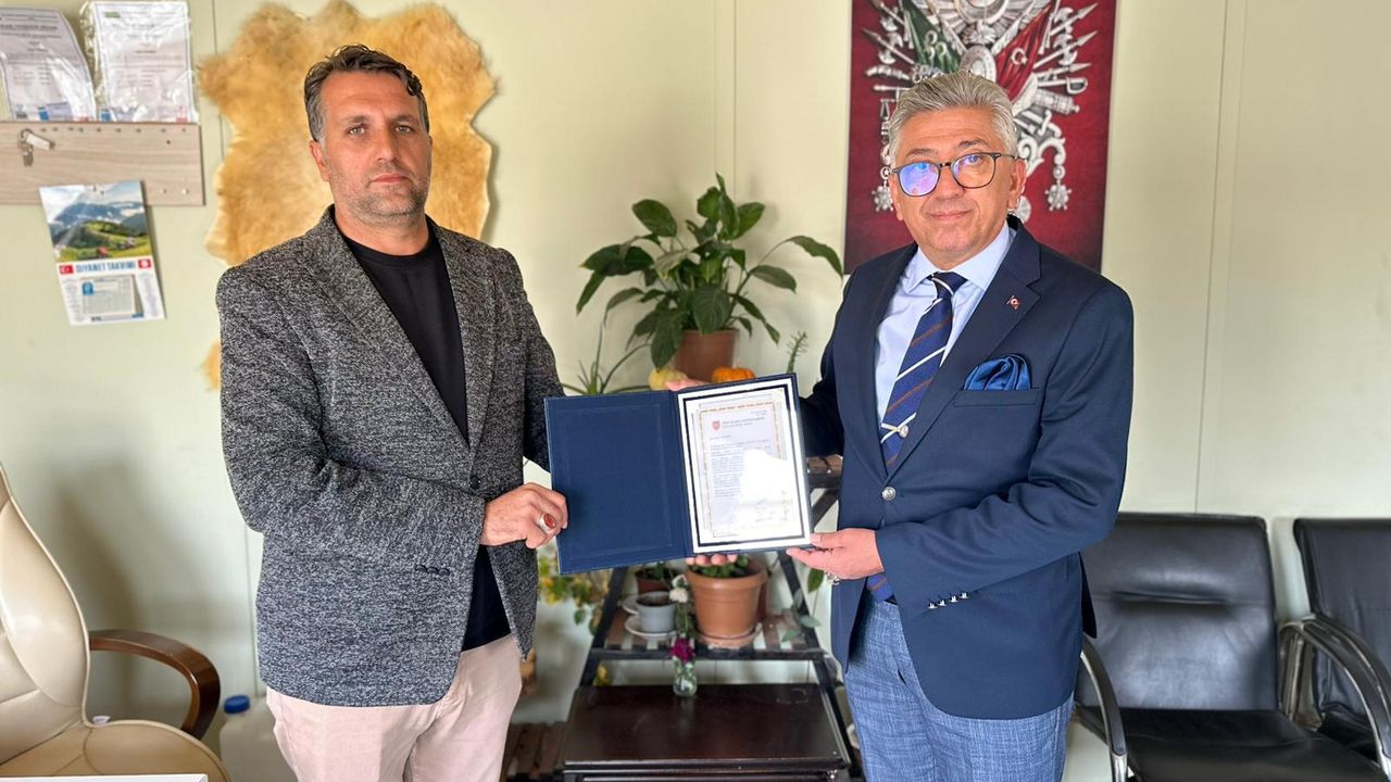 TSKGV Mersin Bölge Temsilcisi Yolaç Erdur, Tecimen'i ziyaret ederek, yaptığı bağıştan dolayı teşekkür belgesi verdi.
