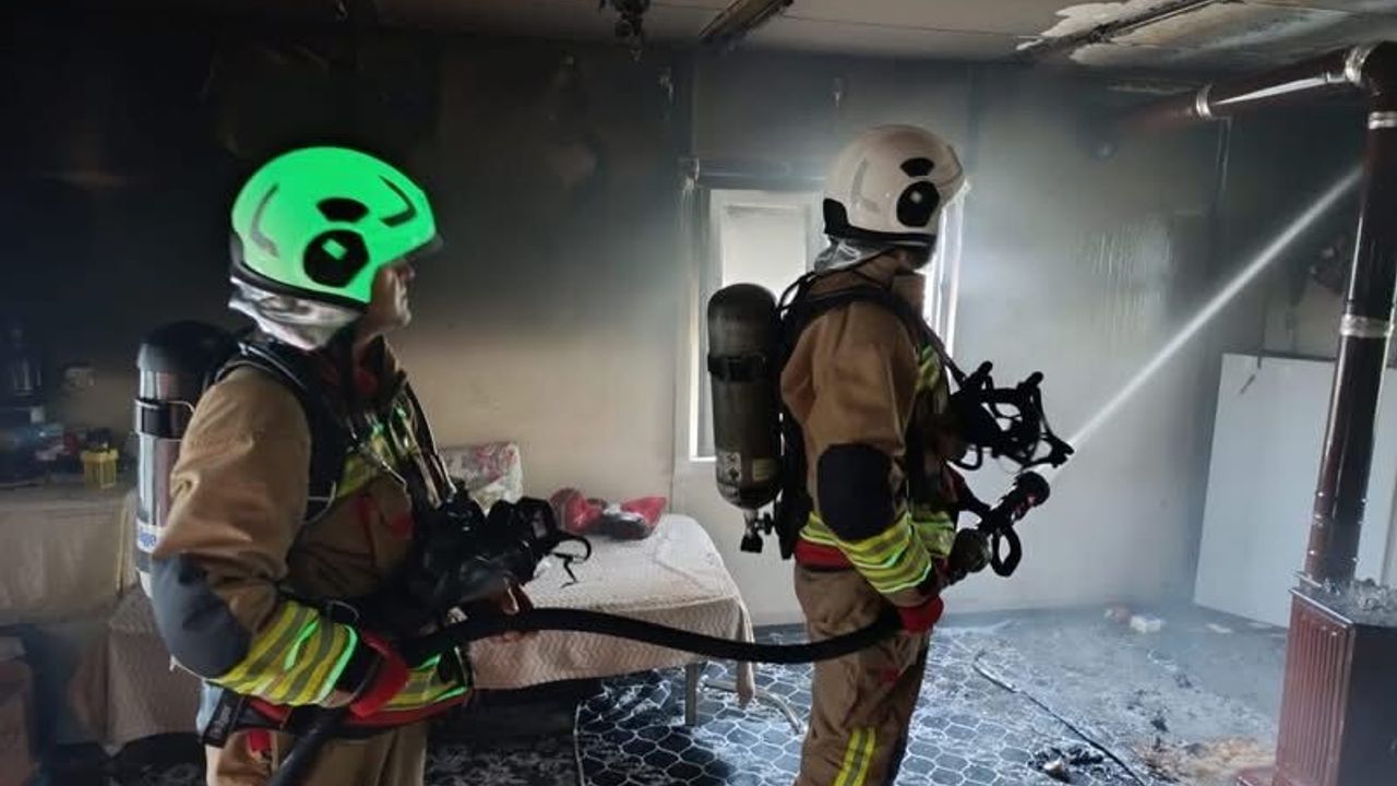 Üçgedik Mahallesi'ndeki bir evde henüz belirlenemeyen nedenle yangın çıktı.