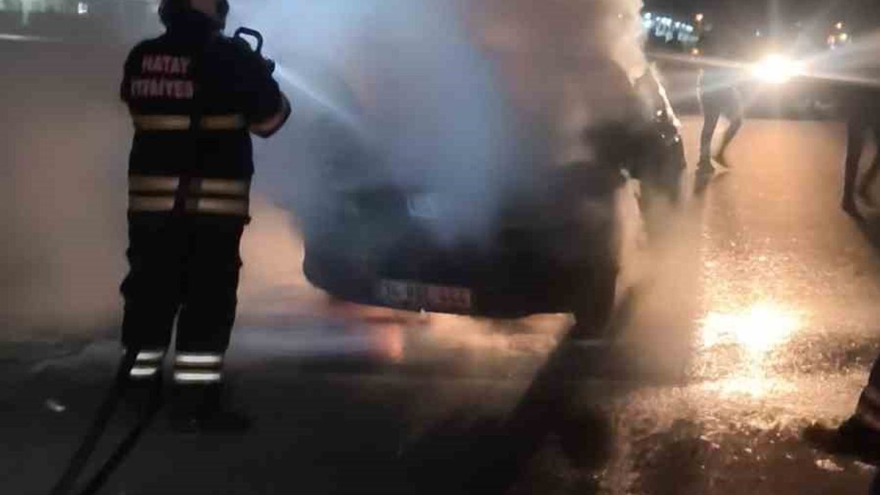 Hatay’da seyir halindeyken yanmaya başlayan otomobilde hasar meydana geldi.