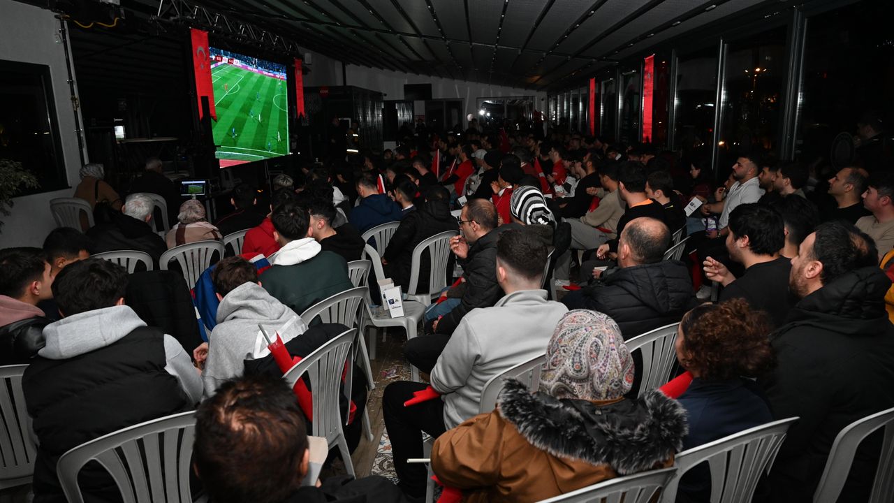 Milli takım forması giyen katılımcılar, ellerindeki Türk bayraklarıyla karşılaşmayı izledi.