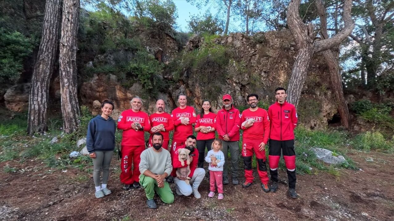 ANTALYA (AA) - Antalya'nın Kumluca ilçesinde kayalıklardaki yarığa düşen köpek ve 6 yavrusu ekiplerin çalışması sonucu kurtarıldı.