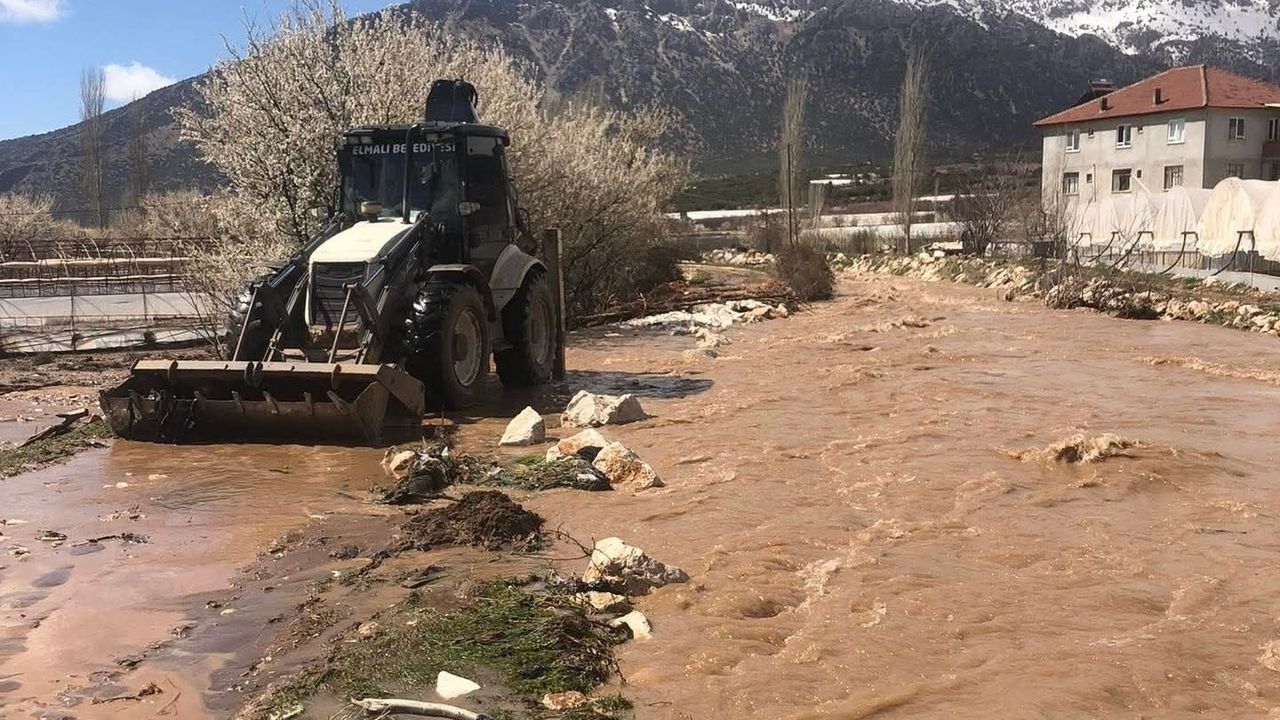 Antalya'nın Elmalı ilçesinde sağanak, tarım arazileri ile seralarda hasara yol açtı.