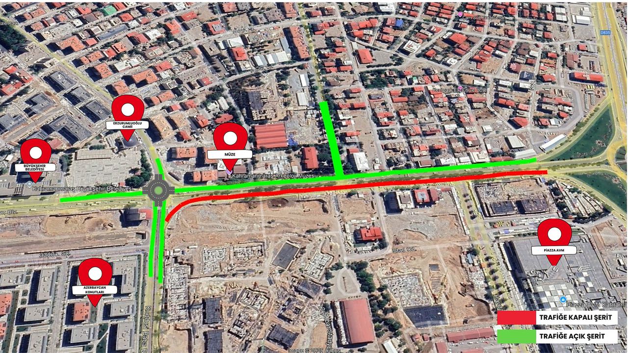 Kahramanmaraş Büyükşehir Belediyesi, gerçekleştirilecek altyapı çalışmaları dolayısıyla Azerbaycan Bulvarı üzerinde Milli İrade Meydanı kavşağından müze kavşağına iniş kısmında trafik düzenlemesine gidileceği duyurdu. Yapılan açıklamaya göre, Milli İrade Meydanı kavşağından müze kavşağına iniş kısmı 23 Aralık 2025 ile 7 Ocak 2026 tarihleri arasında 15 gün süre ile araç trafiğine kapalı olacak. Bölgedeki altyapının yenilenmesi ve geliştirilmesine yönelik çalışmaların kısa süre içinde başlayacağı duyuruldu. Trafiğin düzenli şekilde ilerleyebilmesi için sürücülerin yol üzerindeki uyarı tabelalarına, işaretlere ve yönlendirmelere dikkatle riayet etmeleri gerektiği vurgulandı. Ayrıca, çalışmaların sürdüğü güzergâhı kullanacak araç sahiplerinin yoğunluk yaşamamaları adına mümkün olduğunca alternatif güzergâhları tercih etmeleri önerildi.