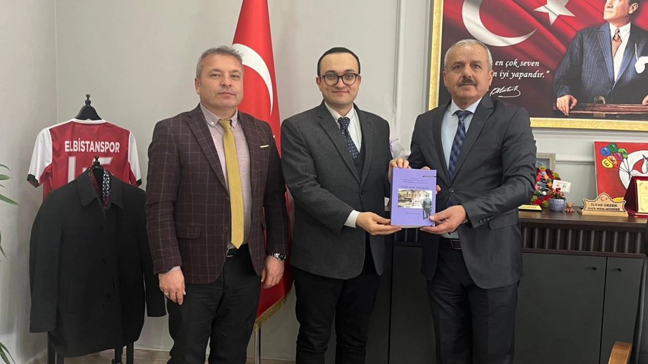 Elbistan İlçe Milli Eğitim Müdürü İlyas Gezer’i ziyaret eden araştırmacı-yazar Orhan Saydam, Elbistanlı halk şairi Adil Soydan’ı konu alan eserini tanıttı.