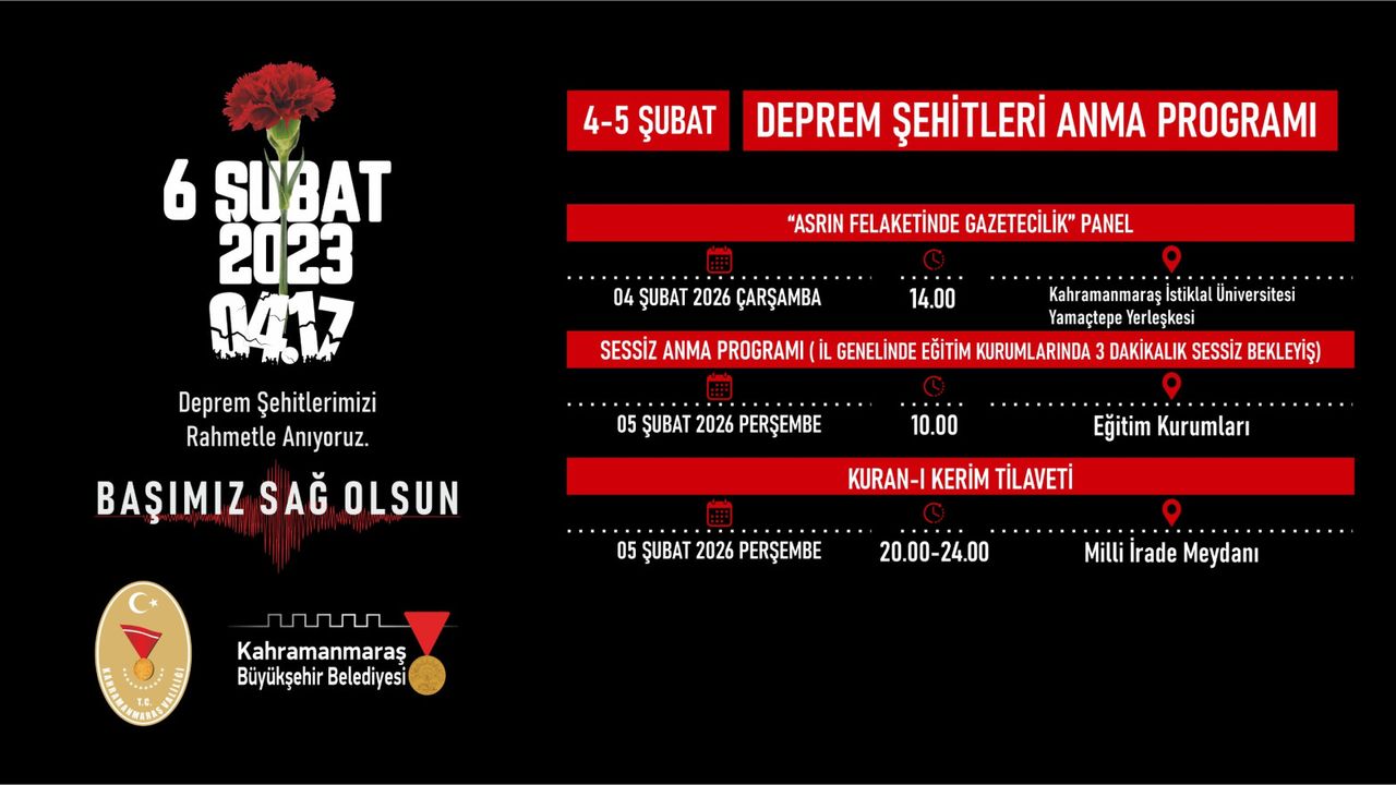 Anma programlarının ilki, 4 Şubat Çarşamba günü Kahramanmaraş İstiklal Üniversitesi Yamaçtepe Yerleşkesi’nde düzenlenecek olan “Asrın Felaketinde Gazetecilik” paneli ile başlayacak. Saat 14.00’da başlayacak programda, deprem sürecinde yaşananlar, kriz dönemlerinde basının rolü ve toplumsal hafızanın inşasında gazeteciliğin önemi alanında uzman isimler tarafından ele alınacak.