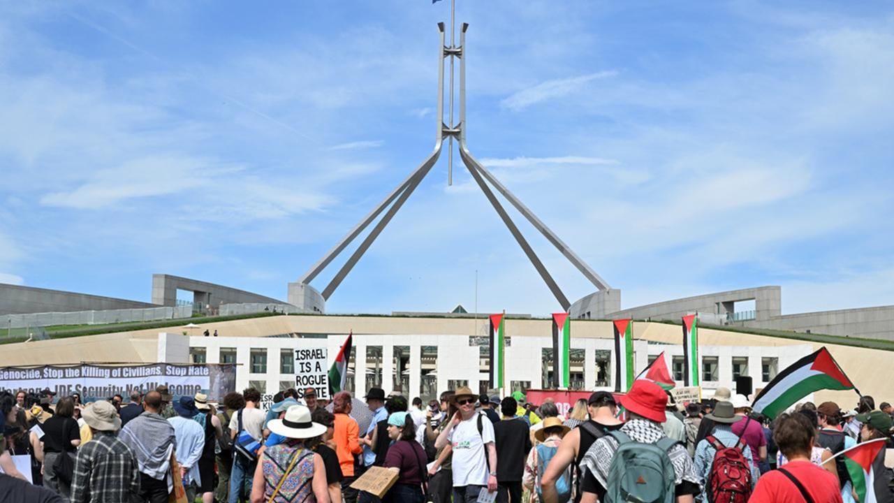 Avustralya'da yüzlerce kişi, İsrail Cumhurbaşkanı Isaac Herzog'un ülkeye ziyaretini protesto amacıyla Parlamentonun önünde toplandı.