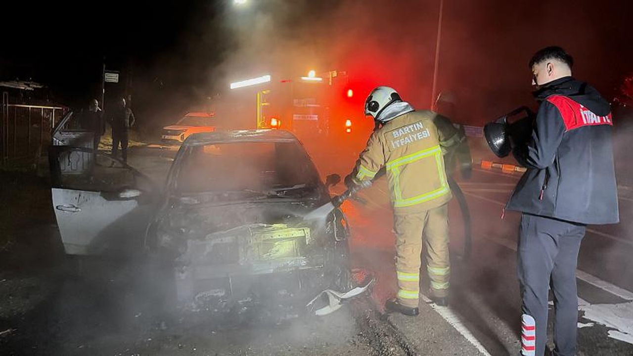 Bartın Şehirlerarası Otobüs Terminali önünde gece yarısı park halinde bulunan bir otomobilde yangın çıktı. Alevler itfaiye ekipleri tarafından söndürülürken, araç kullanılmaz hale geldi.