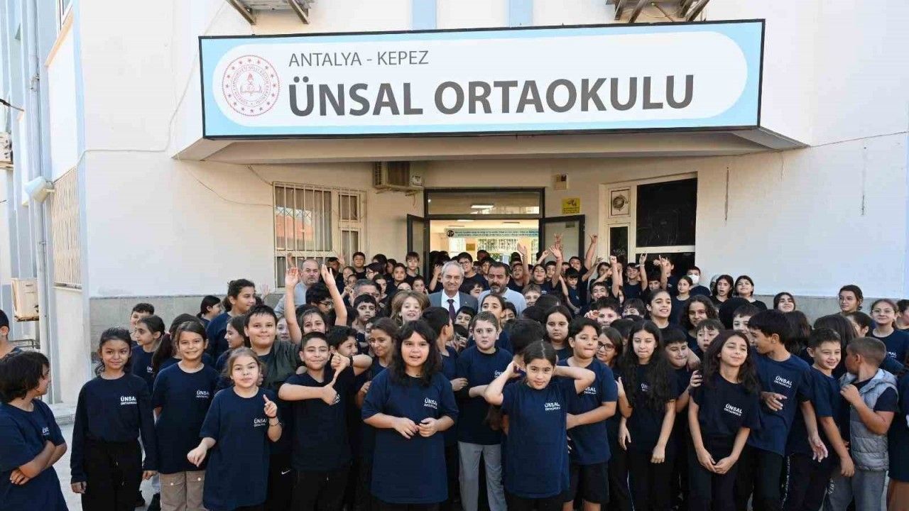 Kepez’deki okulları tek tek gezerek eğitim yuvalarının taleplerini yerinde dinleyen Başkan Mesut Kocagöz, Ünsal Okulu’nu ziyaretinde kendisine iletilen çeşme yenileme talebini anında yerine getirdi. Başkan Kocagöz, çevre bilinci ve doğa sevgisinin erken yaşta kazandırılmasının önemine dikkat çekmek amacıyla da öğrencilerle birlikte fidan dikti. Kepez’in Mobil Bilim Tırı da geleceğin teminatı çocuklar için okul bahçesinde yerini aldı.