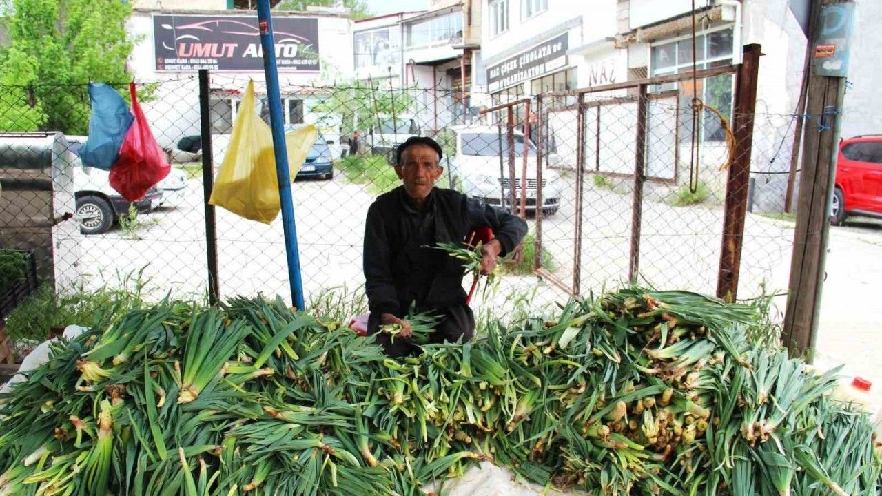 Kahramanmaraş’ta bir vatandaş, Binboğa Dağlarından çiriş toplayarak satışını yapıp geçimini sağlıyor.