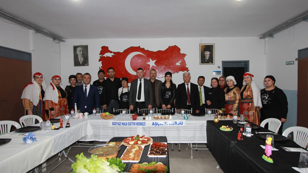 Bozyazı Halk Eğitim Merkezince düzenlenen aşçılık kursunu bitiren kursiyerlerce hazırlanan yöresel lezzetler, düzenlenen etkinlikle sergilendi.