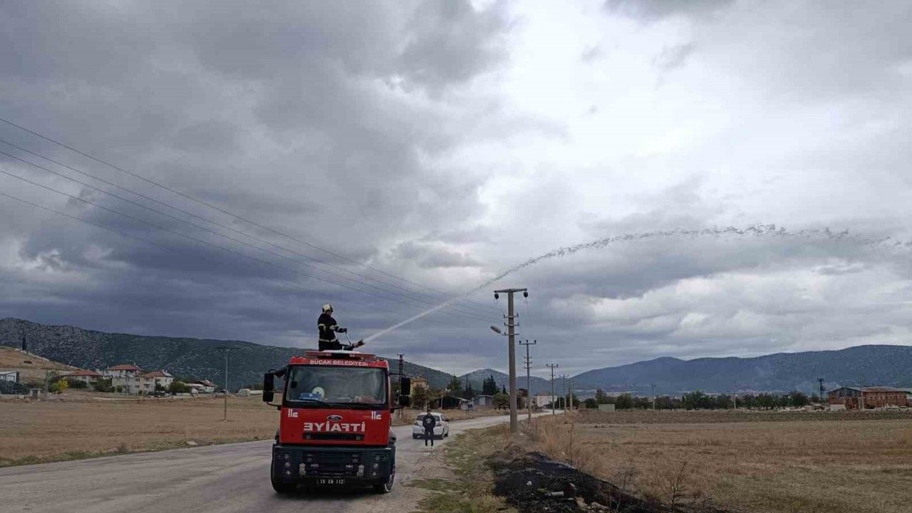 Yangın, Burdur’un Bucak ilçesi İncirhan Köyü’nde meydana geldi. Edinilen bilgiye göre, yol üzerinde bulunan bir arazide yangın çıktı. Alevleri gören vatandaşların ihbarı üzerine adrese itfaiye ekipleri sevk edildi. Yangın itfaiye ekipleri tarafından kontrol altına alınarak söndürüldü.