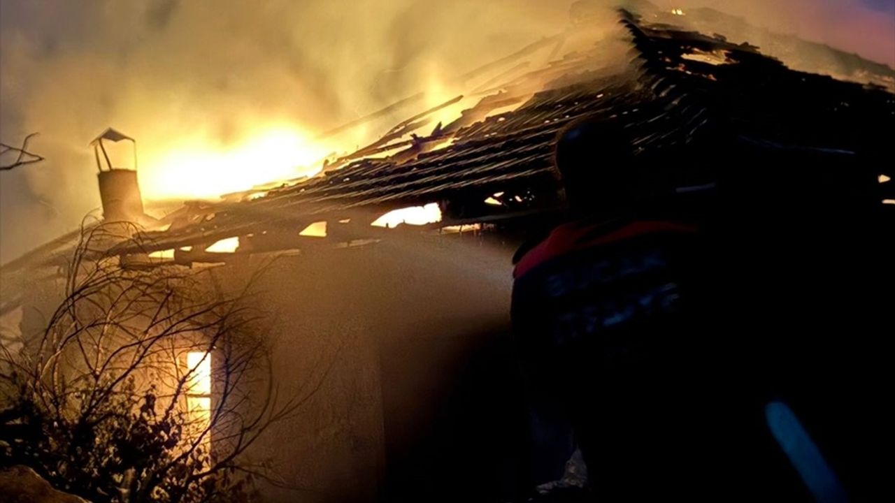 İtfaiye ekiplerince söndürülen yangın nedeniyle ev ve ahır kullanılmaz hale geldi.