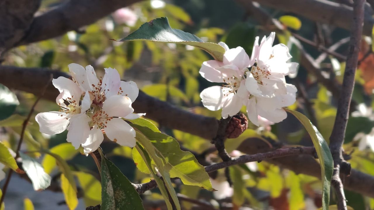 Sonbaharda hava sıcaklıklarının mevsim normallerinin üzerinde seyretmesiyle Alaattin Mahallesi'nde beton bir duvarın yanında yetişen elma ağacında çiçek açtığı gözlendi.