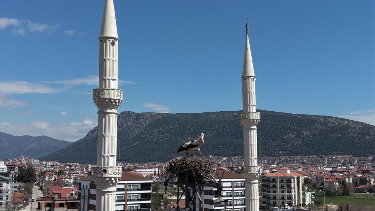 BURDUR (AA) - Burdur'un Bucak ilçesine gelen leylekler, 30 yıldır aynı elektrik direğinde konaklıyor.