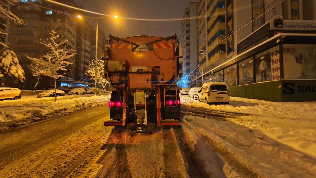 Büyükşehir Belediyesi, arterleri ulaşıma açık tutmak için kar küreme çalışmalarını durmaksızın sürdürürken buzlanmanın önüne geçmek için de tuzlama uygulamalarına ağırlık verdi.