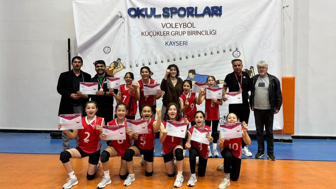 2025–2026 Eğitim Öğretim Yılı Okul Sporları faaliyet programı kapsamında Kayseri’de gerçekleştirilen Voleybol Küçük Kızlar Grup Birinciliği müsabakaları büyük heyecana sahne oldu. Turnuvada mücadele eden Çağlayancerit Ortaokulu Küçük Kız Voleybol Takımı, gösterdiği üstün performansla tüm rakiplerini mağlup ederek namağlup şekilde grup birincisi oldu.