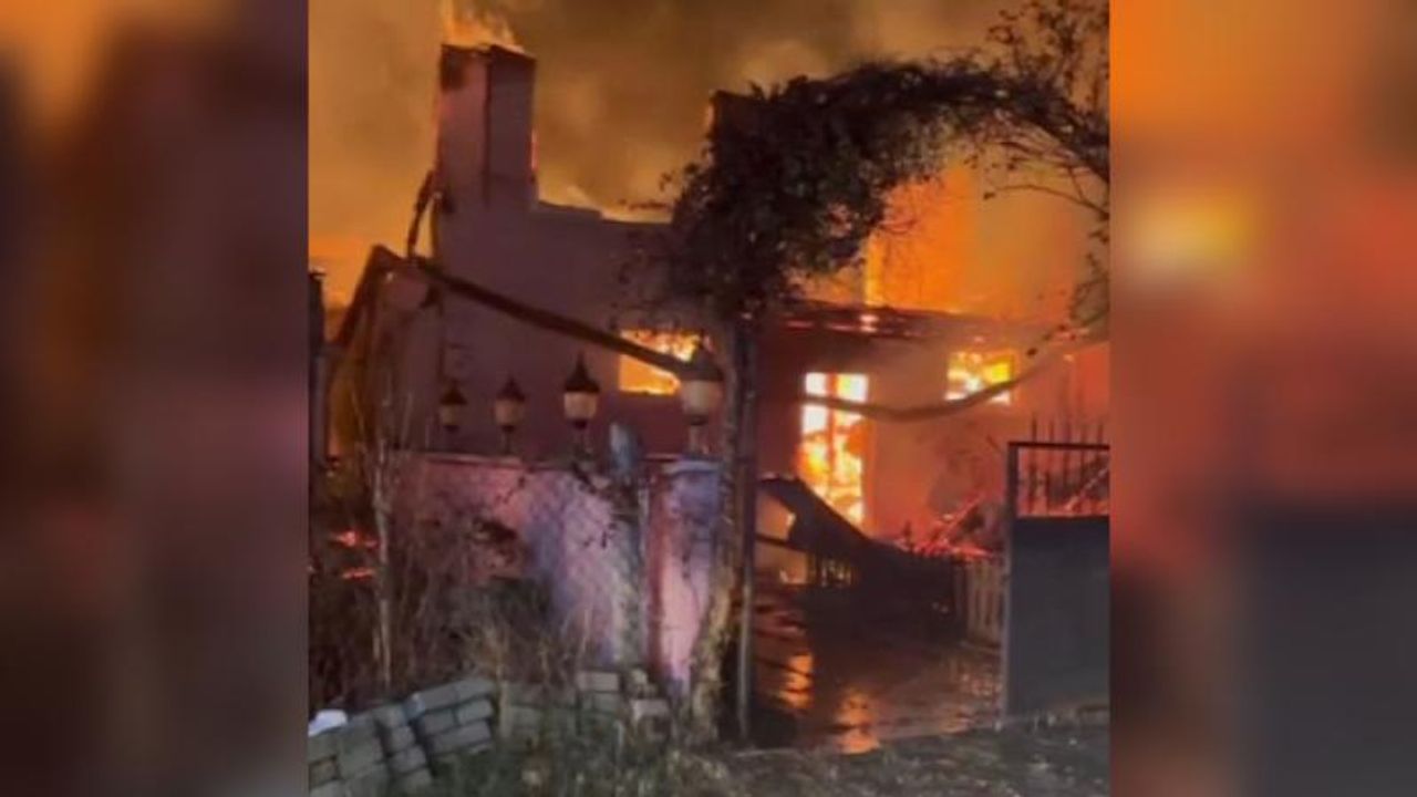 Ekipler yangını söndürmek için çalışma başlatırken iki ev adeta küle döndü.