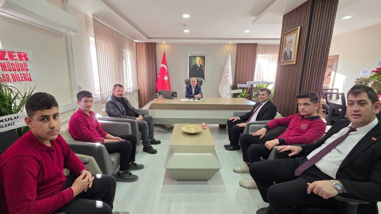 Turnuva sonrası ilçeye dönen sporcular, İlçe Milli Eğitim Müdürü Bünyamin Özdemir’i makamında ziyaret etti. Ziyarete Şube Müdürleri Alpaslan Ceran ve Resul Çatal da eşlik etti. Gerçekleşen ziyarette başarılı öğrenciler tebrik edilerek kendilerine hediyeler takdim edildi.