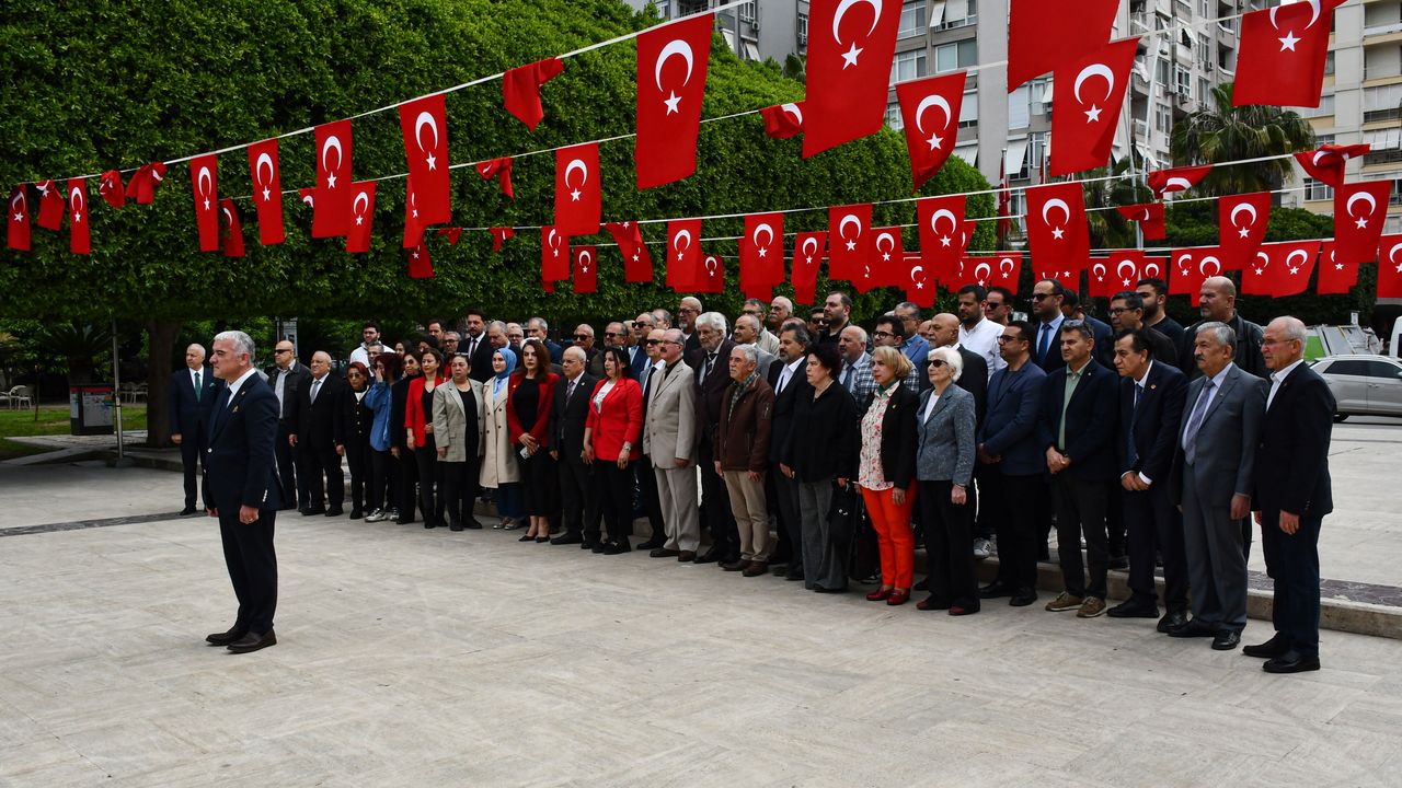 Atatürk Parkı'nda düzenlenen törende saygı duruşunda bulunulmasının ardından ÇGC Başkanı Kurtul Çakın ve gazeteciler Atatürk Anıtı'na çelenk sundu.