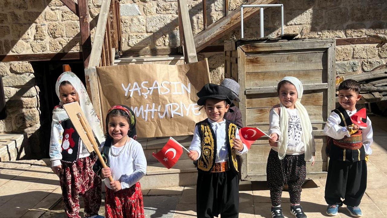 Minik öğrenciler, 29 Ekim Cumhuriyet Bayramı’nı öğretmenlerinin rehberliğinde Cumhuriyet’in ilanını canlandıran özel bir drama gösterisi sergiledi. Geleneksel kıyafetleri, ellerindeki Türk bayrakları ve coşkulu sesleriyle çocuklar, Cumhuriyet’in kazanılmasının önemini bir kez daha hatırlattı.