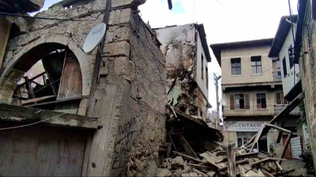 Mersin’in Tarsus ilçesinde daha önce yangında zarar gören eski bir bina yağmurla birlikte çöktü.