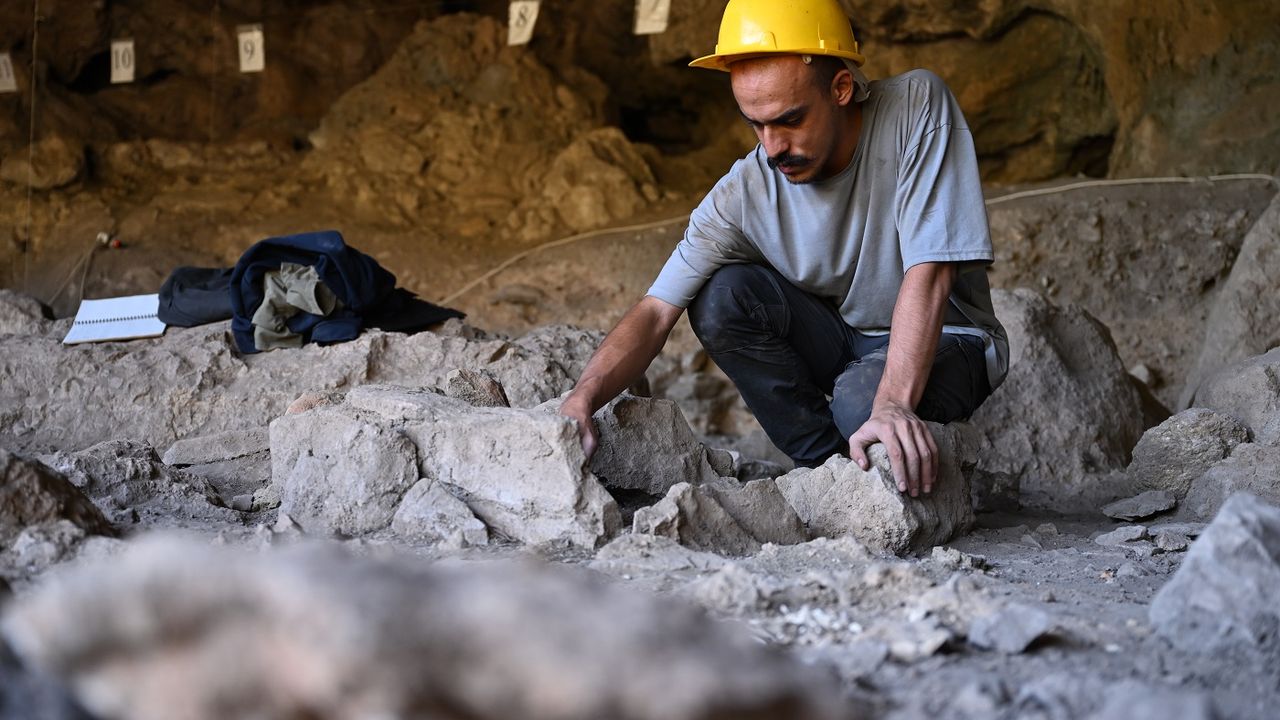 Kahramanmaraş'taki Direkli Mağarası'nda yürütülen kazı çalışmalarında yaklaşık 13 bin yıl öncesine tarihlenen kemikten yapılmış iki delici el aleti (bız) ile 4 parça halinde delikli boncuk bulundu.