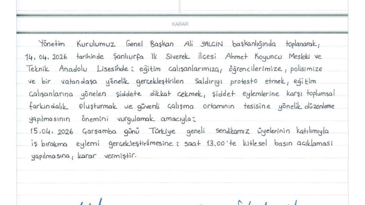 Son dönemde yaşanan olaylara dikkat çekilen açıklamada, İstanbul’da öğretmen Fatma Nur Çelik’in hayatını kaybetmesi, Ankara Pursaklar’da bir öğretmenin darp edilmesi ve Siverek’te yaşanan silahlı saldırının, gelinen noktayı gözler önüne serdiği ifade edildi. Özellikle Siverek Ahmet Koyuncu Mesleki ve Teknik Anadolu Lisesi’nde eski bir öğrenci tarafından gerçekleştirilen saldırının, okullardaki güvenlik sorununu açıkça ortaya koyduğu vurgulandı.